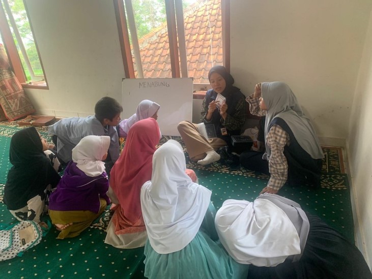 SOSIALISASI MENABUNG SEJAK DINI PADA MURID TPA MASJID DARUL FIKRI DESA SUKANAGARA