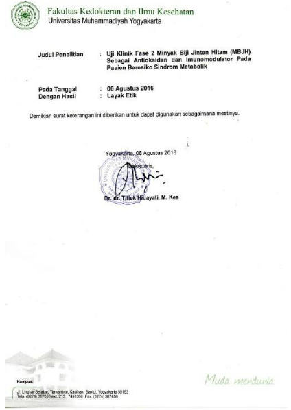 PENGARUH PEMBERIAN MINYAK BIJI JINTEN HITAM (Nigella sativa) TERHADAP INTERLEUKIN-21 (IL-21) PADA PASIEN BERESIKO SINDROM METABOLIK